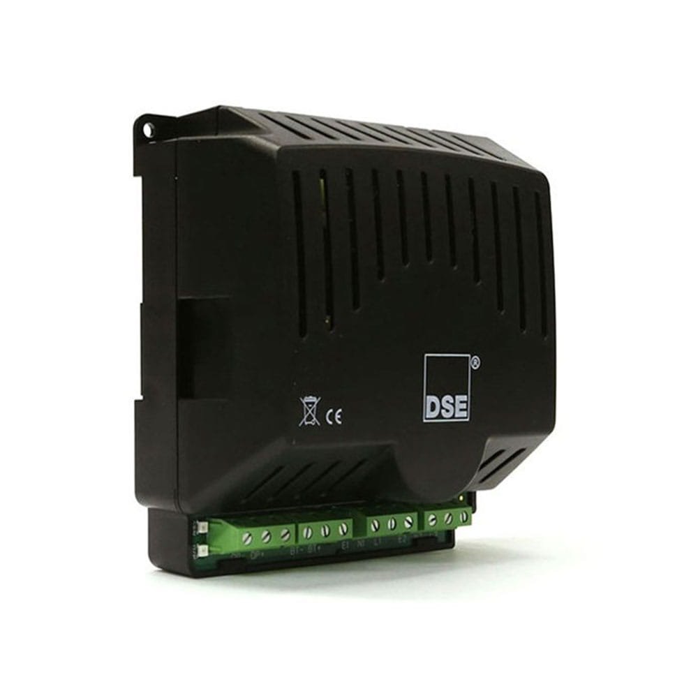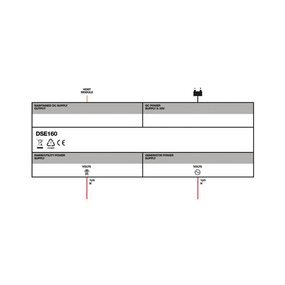 The DSE160 Self-Seeking Power Supply has been designed for use with DSE3xx control modules. The DSE160 can be supplied from a mains (utility), generator or battery and provides a power supply output that gives DC power to the ATS controller. When the mains (utility) supply fails the DSE160 automatically switches to providing generator or battery power. Three red LEDs on the front of the unit show the operating status at all times. The DSE160 is available in 12 and 24 volt versions and provides comprehensive short circuit protection.