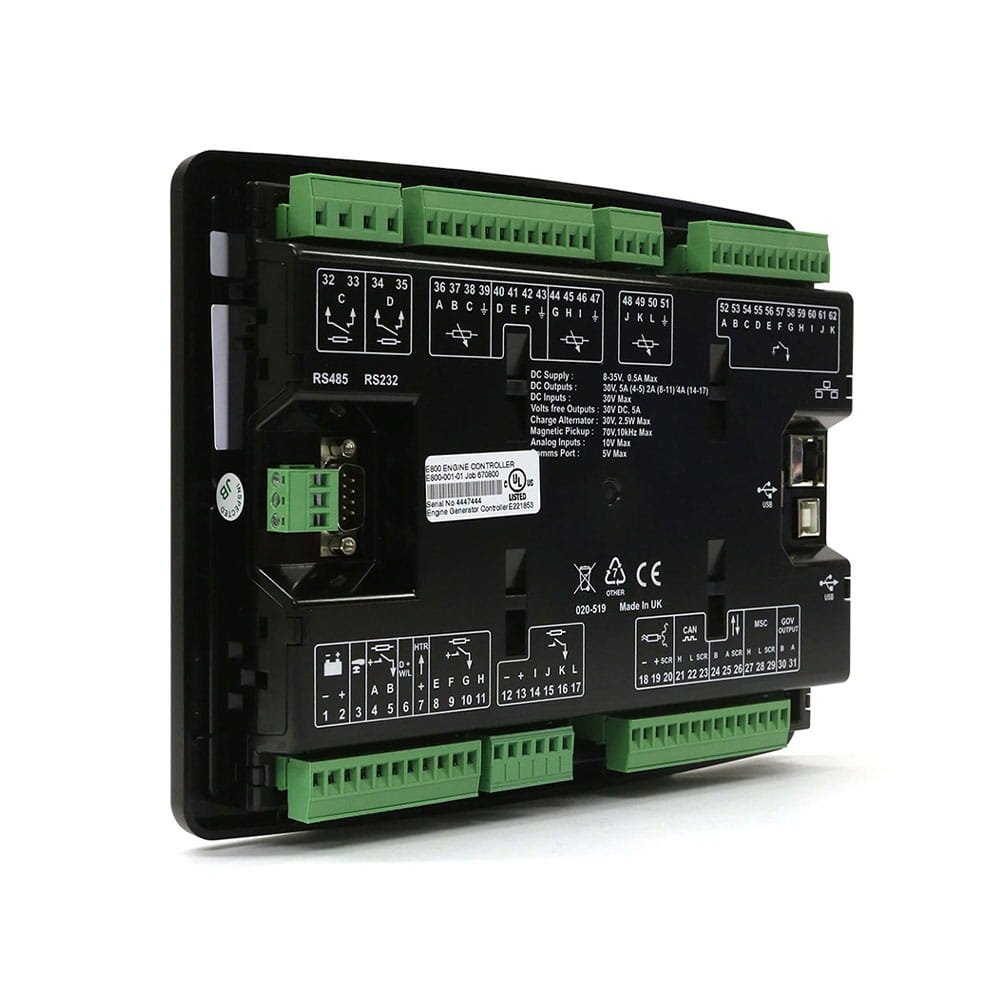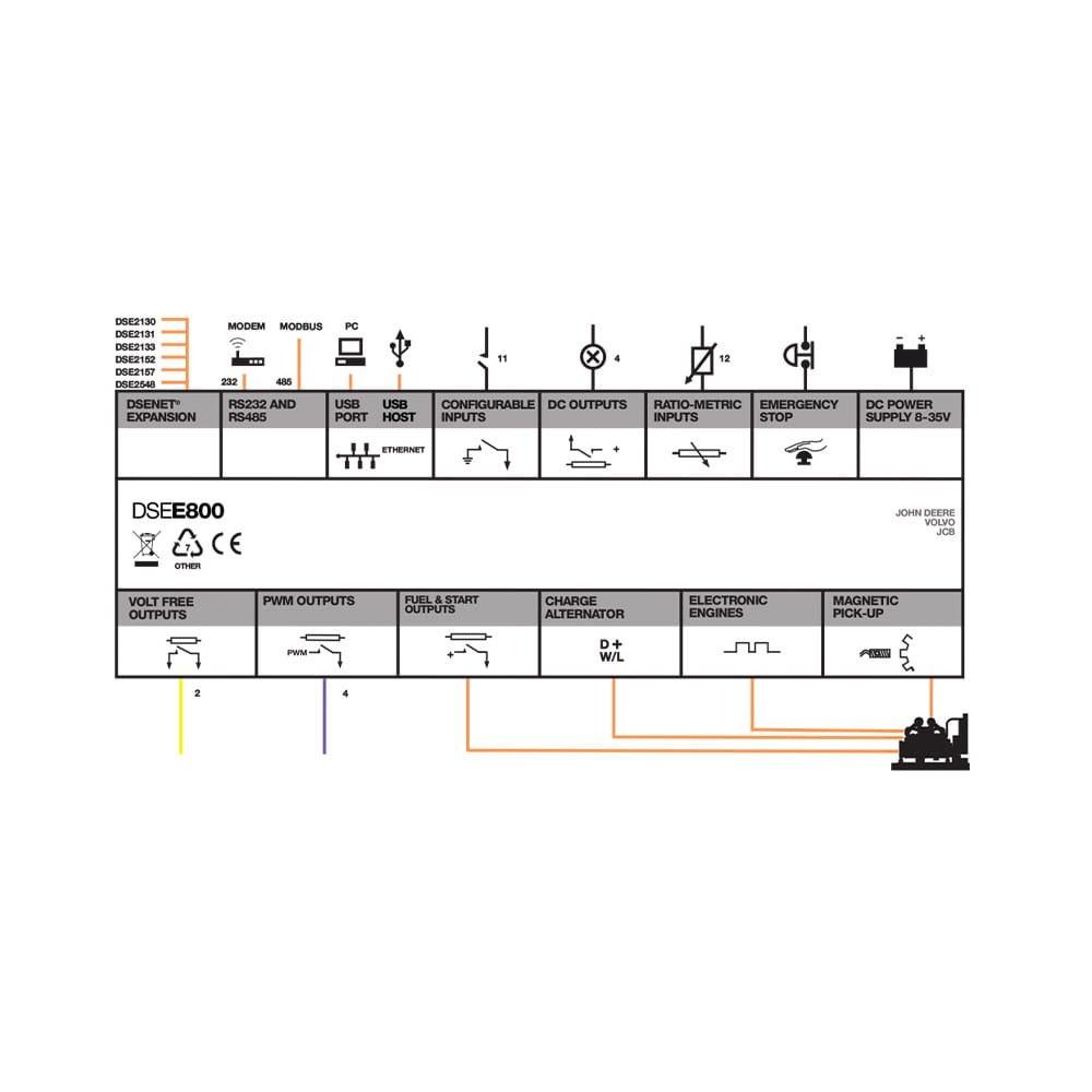 The DSEE800 engine control module has been designed to provide flexible control and monitoring for engine driven pumps, compressors, hydraulic power packs and off-highway machinery. The control module can be used with electronic and mechanical diesel engines and offers outstanding flexibility via its integrated PLC editor. This flexibility enables users to match required operating modes unique to their applications.