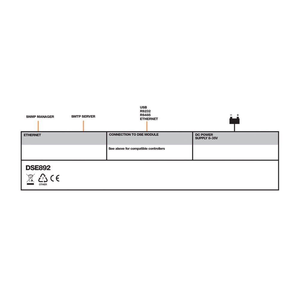 The DSE892 connects DSE control modules to external SNMP systems. Once a connection is made full monitoring and control functionality becomes active. The gateway device specialises in monitoring the instrumentation and operating state of the connected DSE control module.