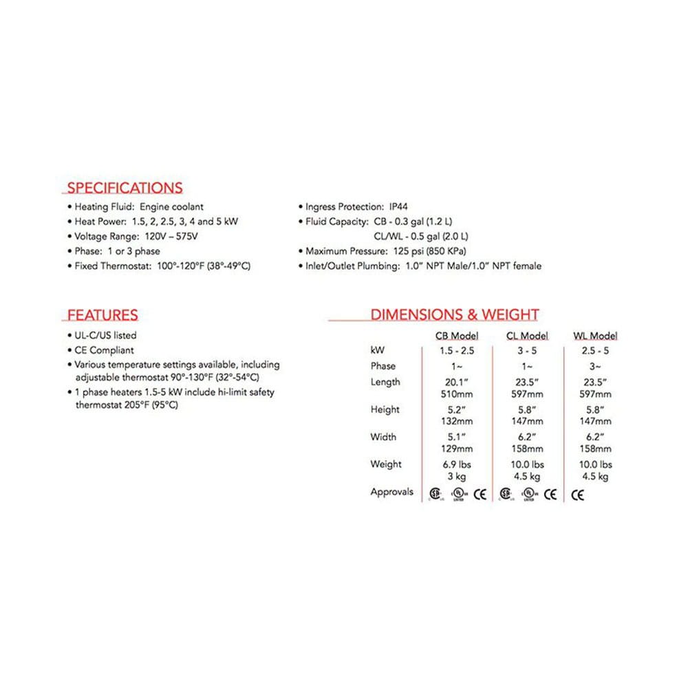 HOTSTART CB coolant preheaters maintain optimal engine temperatures for diesel and gas engines used in construction equipment, trucks, heavy-duty mobile equipment, marine, and industrial applications. These engine heaters keep engines at operating temperature during downtime, improve cold-weather and emergency starts, and eliminate unnecessary idling.
