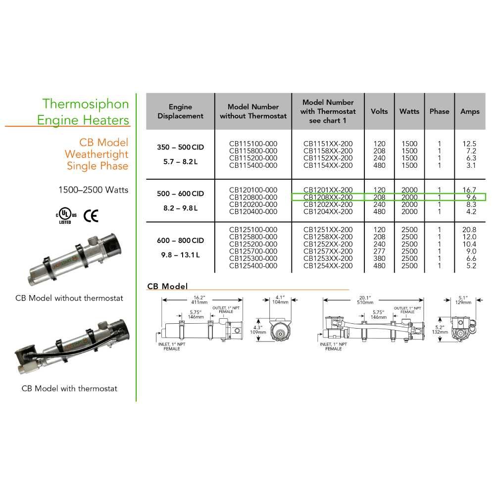 - HOTSTART CB120812-200 Engine Heater – Weather-Tight Coolant preheater with Thermostat