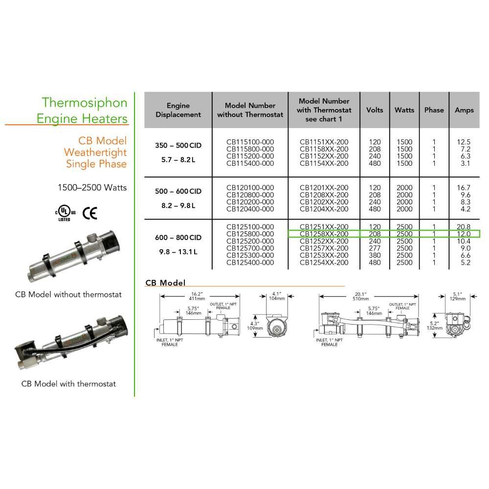 - HOTSTART CB125808-200 Engine Heater – Weather-Tight Coolant preheater with Thermostat