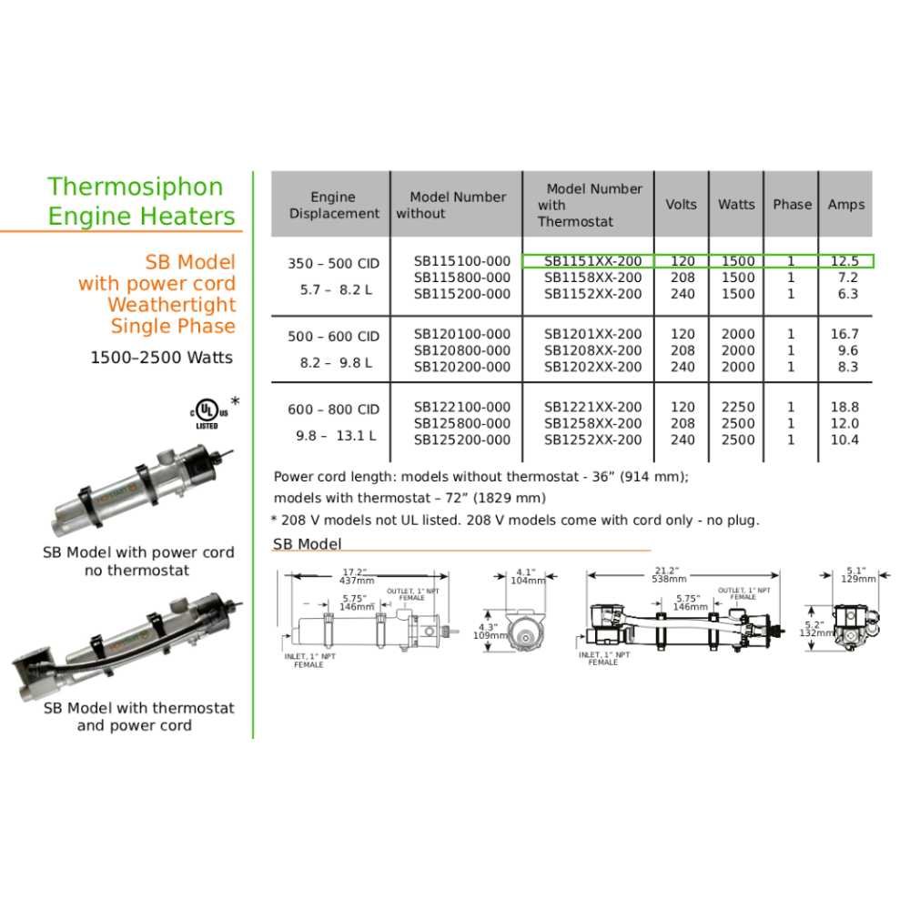 - SB Engine Heater – Weather-Tight Coolant preheater