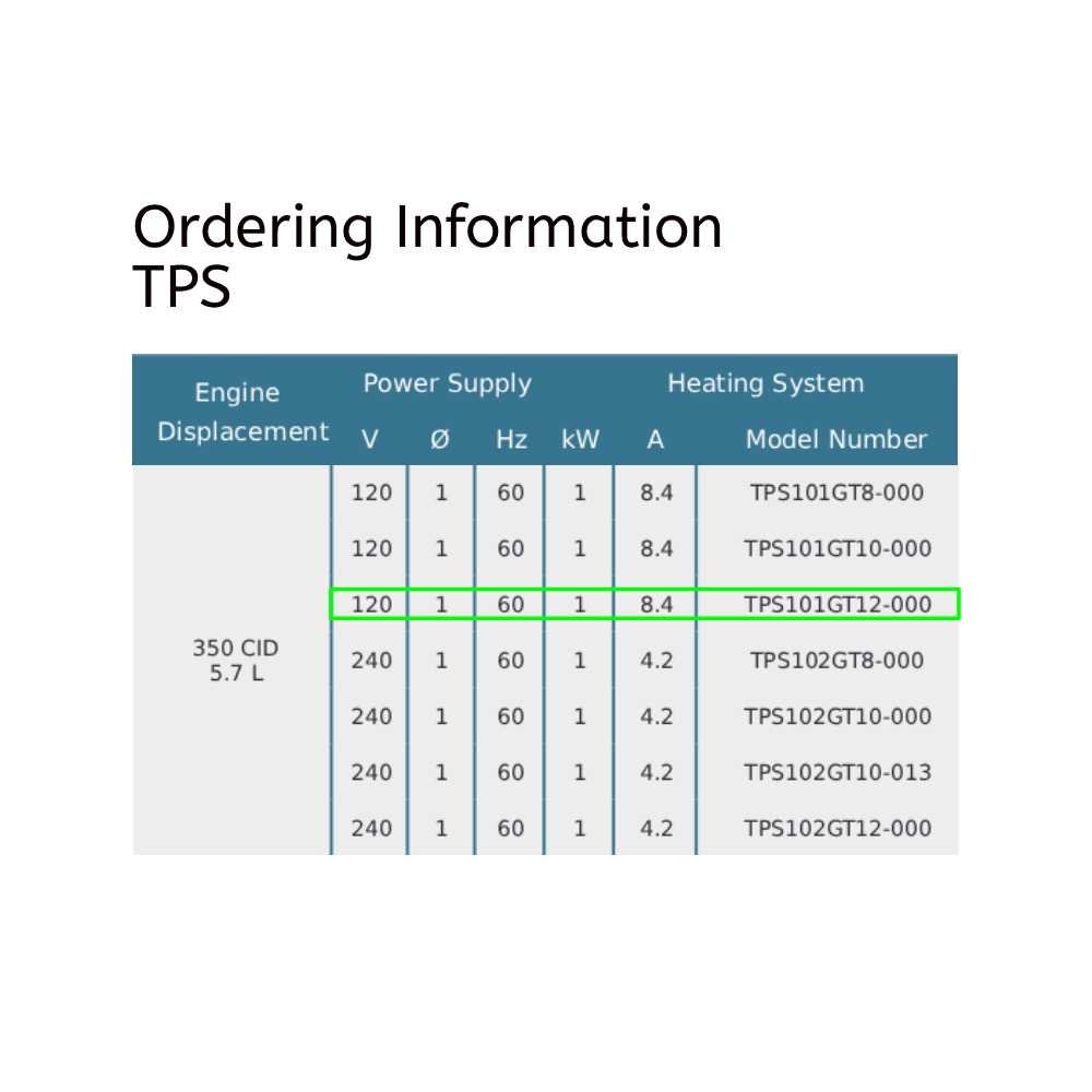 HOTSTART TPS engine heaters provide even heat distribution resulting in reduced engine wear, quick start-ups and reduced emissions. The compact design is ideal for locations that require minimal mounting space. Specs: Heating Element: Incoloy 800 Enclosure: IP41 Resists corrosion Fluid Capacity: 0.11 gal (0.42 L) Maximum Pressure: 90 psi (620 kPa) Inlet/Outlet Plumbing: 0.625” (15.9 mm) Tank Material: Polyphenylensulfid PPS L-C/US listed CE compliant. Power cord length on all models – 48” (1219mm).