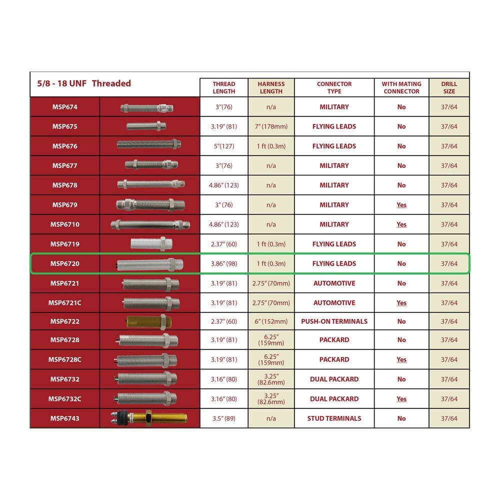 3.86 in [98 mm] Thread Length • 1 ft [0.3 m] Harness • Flying Leads • Aluminum Clear Anodized