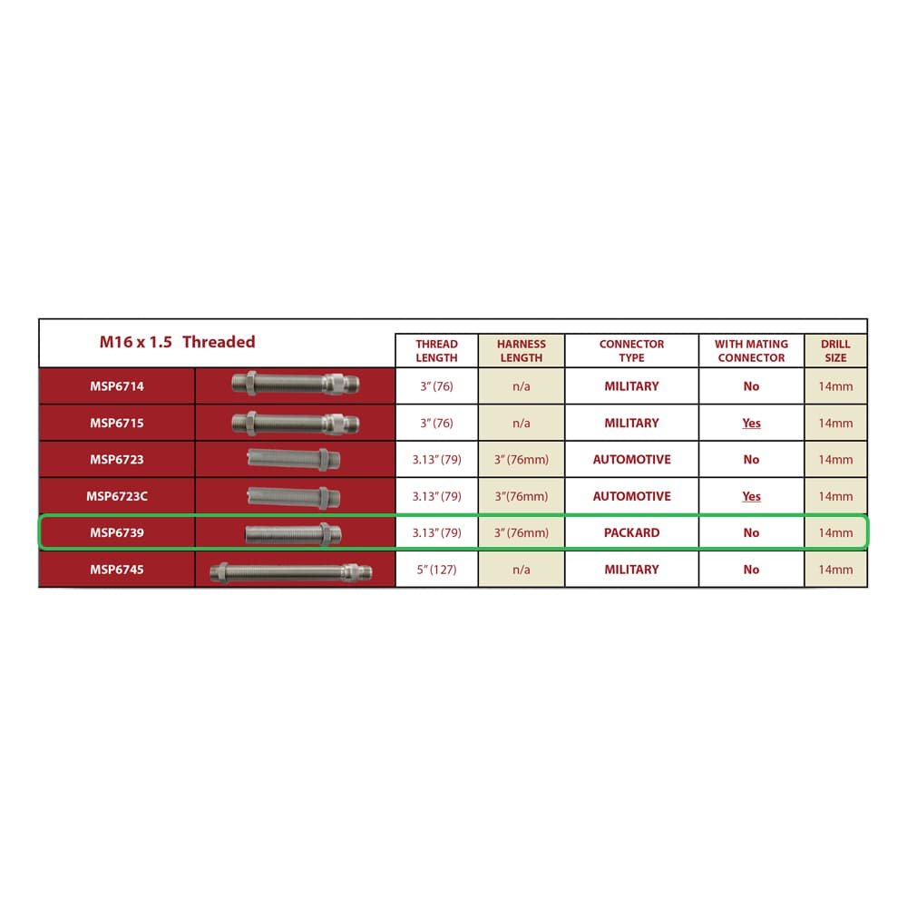 The Magnetic Speed Sensor detects when ring gear teeth, or other ferrous projections, pass the tip of the sensor. Electrical impulses are produced by the sensor’s internal coil and sent to the speed control unit. The signal from the magnetic speed sensor, teeth per second (Hz.), is directly proportional to engine speed. Speed sensors are available in various lengths in both U.S. and metric threads. Wire leads, military connectors, packard connectors, automotive connectors or stud terminals are also available. Over 35 styles currently available.