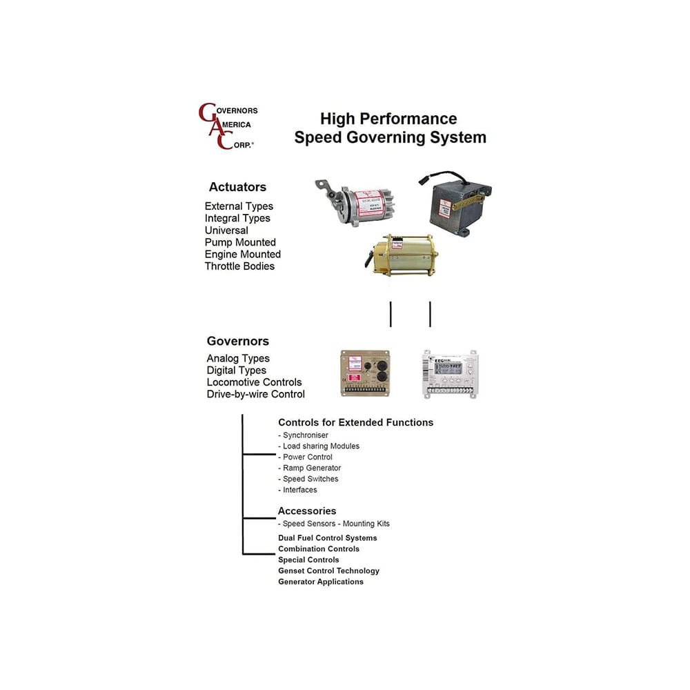 - Control a wide variety of engines | Application in: military grade equipment, rail, marine, industrial, heavy machinery, gaseous engines, power generation, oil and gas and much more GAC is ISO 9001 certified | We carry the full line of Governors America Corp products, email Thunder Parts your requirements!