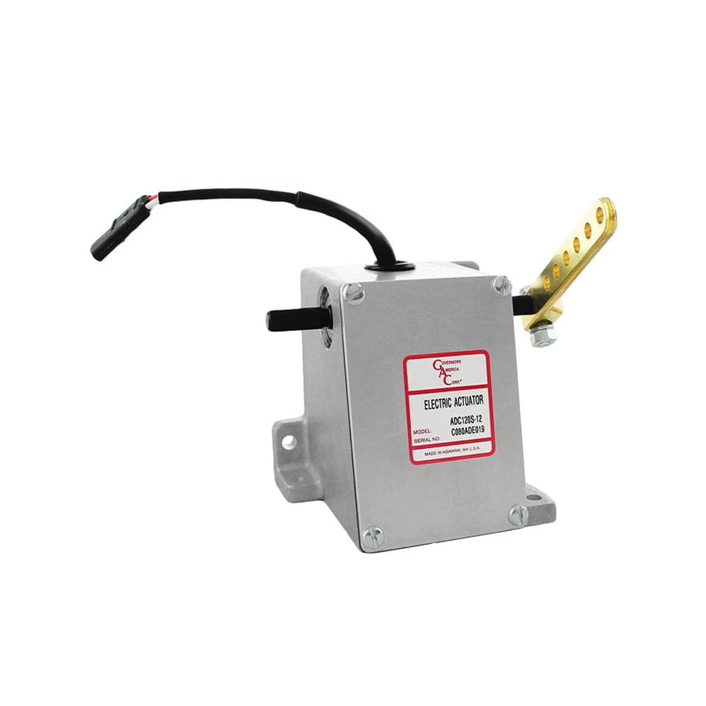 The 120 Series Electric Actuator is a rotary-output, proportional servo. This electromechanical actuator is used as an engine fuel control positioning device. An internal spring provides fail-safe operation by forcing the actuator to the fuel shutoff position when the actuator is de-energized. Provides fast operation, multi-voltage usage, and proven reliability. The actuators can operate directly on 12- or 24- V DC battery supplies. Ideal for fuel systems on engines up to 150 HP.