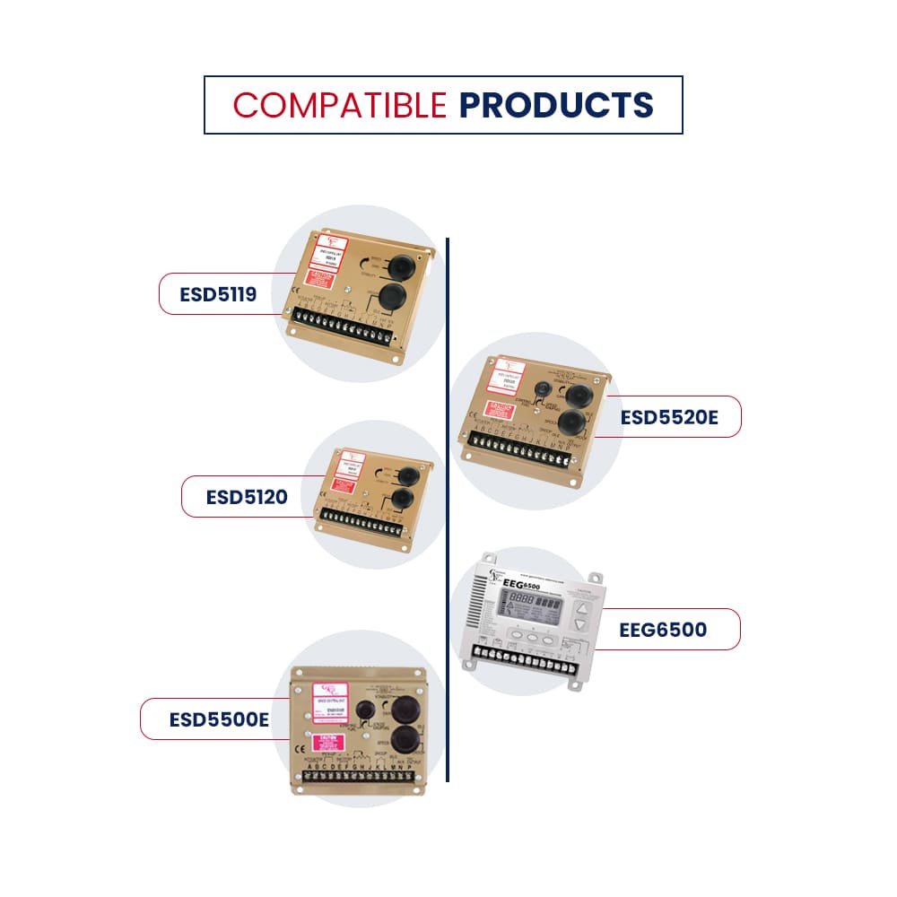 - Requires only a firm mounting surface, appropriate linkage to the fuel control and electrical connection to the speed control unit