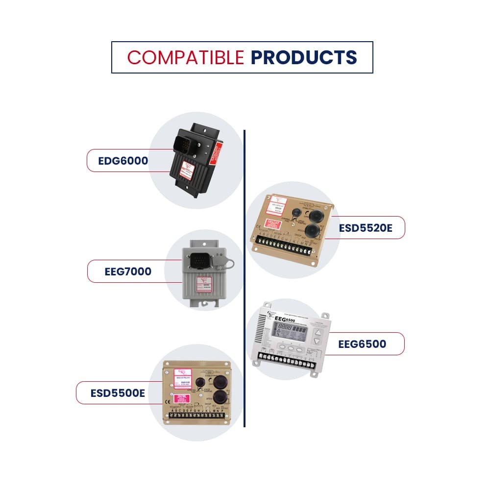 - Requires only a firm mounting surface, appropriate linkage to the fuel control and electrical connection to the speed control unit