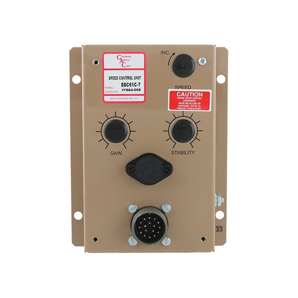 The ESC Series speed control unit is a high performance, solid-state device designed to control engine speed with fast and precise response to transient load changes. This closed loop control, when connected to a proportional electric actuator and supplied with a magnetic speed sensor signal, will control a wide variety of engines in an isochronous or droop mode. It is designed for high reliability and built ruggedly to withstand the engine environment.