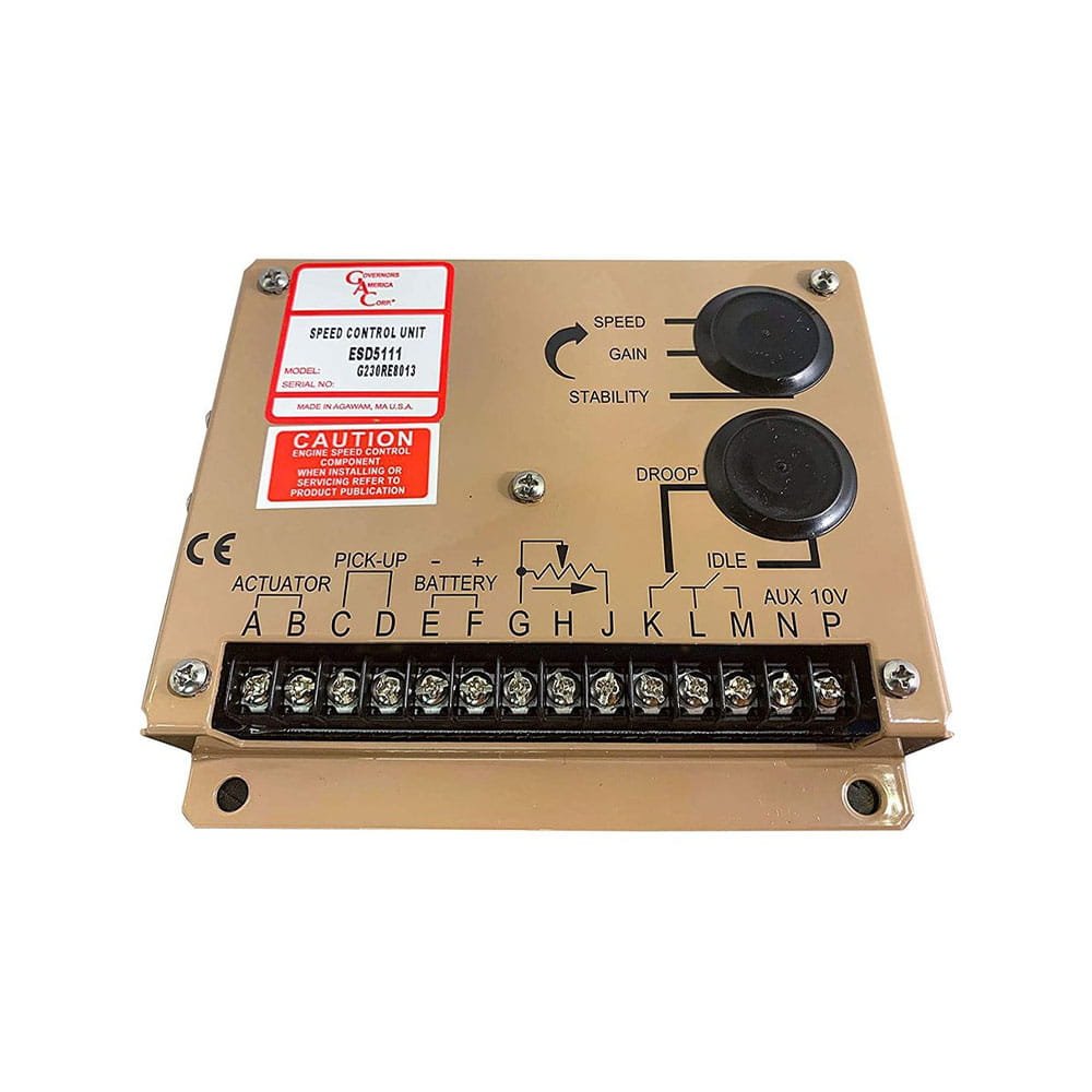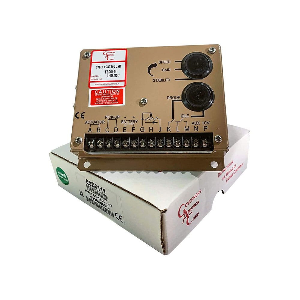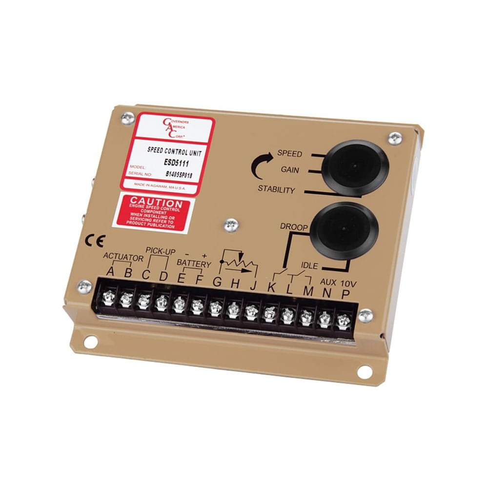 The ESD5100 Series speed control unit is an all- electronic device designed to control engine speed with fast and precise response to transient load changes. This closed loop control, when connected to a proportional electric actuator and supplied with a magnetic speed sensor signal, will control a wide variety of engines in an isochronous or droop mode. It is designed for high reliability and it's hard potted to withstand the engine environment.
