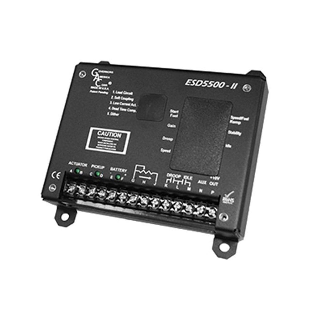 The next generation of GAC’s Speed Controllers, the ESD5500-II Fusion Series combines all of the most popular functions of the various ESD5500 Series (5500, 5520, 5526 & 5528) into a single, high-performance unit. The ESD5500-II speed control unit is designed to precisely control engine speed with rapid responses to transient load changes. The ESD5500-II speed control is compatible with all GAC proportional actuators except the ACB2001 electric actuator since this high torque actuator also requires current limiting available in the ESD5300 Series.  Ruggedly built to withstand all engine environments, the ESD5500-II has all the same well known features of the ESD5500 and also incorporates selectable light-force for low current actuators, dither for difficult engines with respect to stability and integrated anti-windup for both diesel and gaseous application.