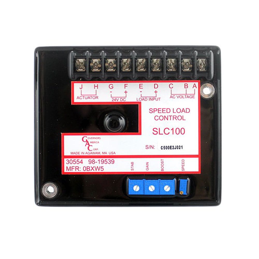 The SLC100 electronic governor, DOD part number 98-19539, controls the generators electrical load by adjusting engine speed, it controls generator voltage, not speed. This variable speed operation results in low noise, signifi cantly reduces fuel consumption and extends engine life.
