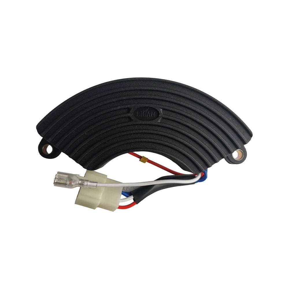 4KW to 7.5KW rated power generator Driven by gasoline engine from 9HP,11HP,13HP,14HP(also work with diesel generators) CAPACITOR - 450V 680uF DIMENSIONS - 5.5"/140mm(hole to hole on center) NOTE - You may need to adjust the little brass screw clockwise to meet your desired voltage output. 6 WIRES - 4 wires in one connector and 2 single wires