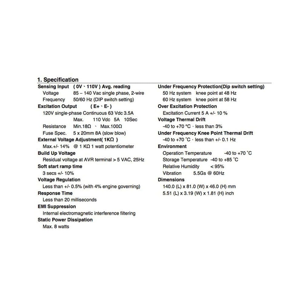 Analog/Digital,Single-ph ase detection,Excitation Current 3.5 Amps. For use in brushl ess, self-excited (shunt) ge nerators Compatible with Leroy Somer* R250/R230, AVR