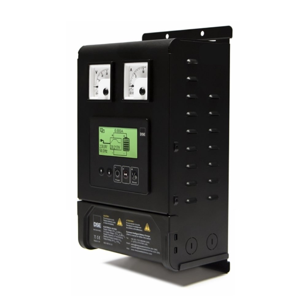 The DSEBC2410Ei is an enclosed intelligent battery charger that supports multiple battery types across a wide range of applications. Its advanced technology automatically detects system settings and charging profiles, including cell voltage and boost voltage, to deliver high-level charging performance.