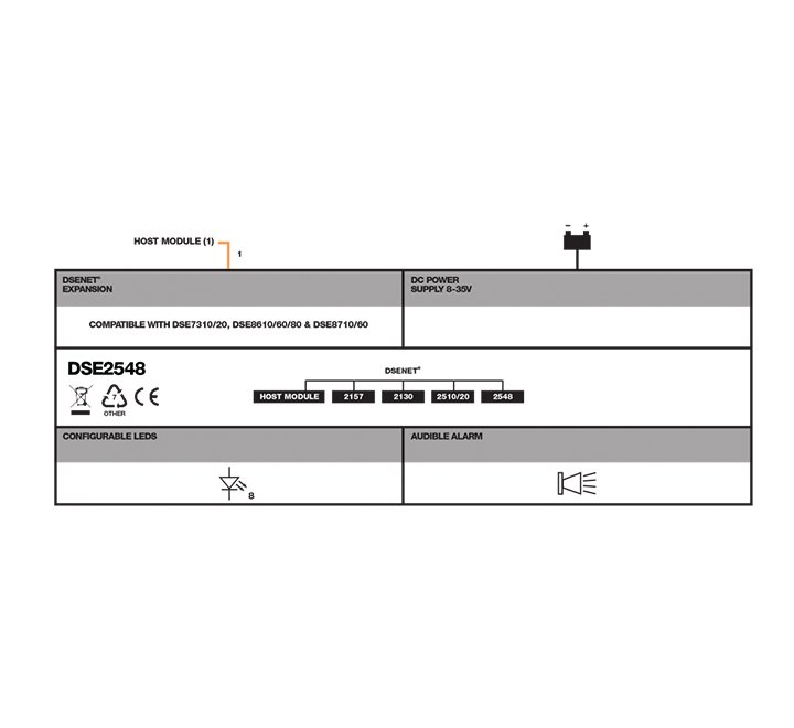 [vc_row][vc_column][vc_column_text]The DSE2548 is an output expansion module that can display a maximum of eight individual LED indications. Each indication is user configurable via the host module. The DSE2548 can be located up to a maximum of 1 km (0.6 mile) away from the host control module.[/vc_column_text][/vc_column][/vc_row]