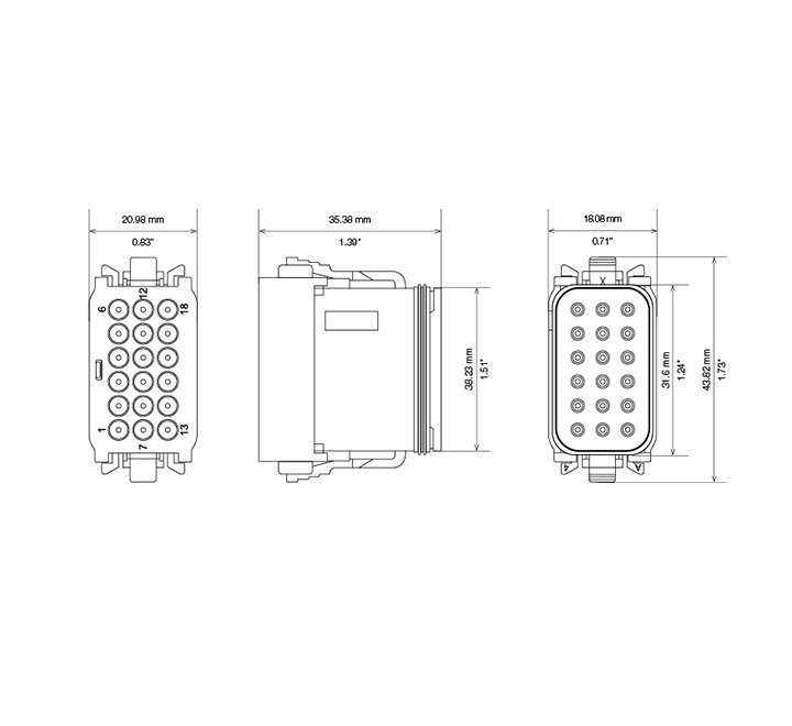 [vc_row][vc_column][vc_column_text]DT16 Deutsch Connector A, 18-way complete with pins.[/vc_column_text][/vc_column][/vc_row]