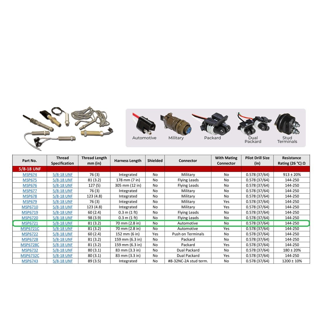 3.19 in [81 mm] Thread Length • 2.75 in [70 mm] Harness • Automotive Connector • Stainless